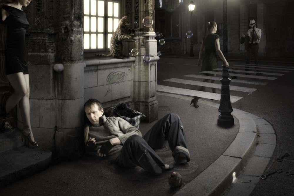Obviously, I am not into realistic nor documentary photography. While I do love looking at such photos, I don’t feel the need to start taking some myself. However, what I do feel is a need to create. I am not sure I have a photographic vision as such, but I do have an overall vision of life, just like everyone. This vision has many faces: it can be opinions about cultural or political topics, personal reflection about some subject, my own doubts, a situation I see in the street, a book, a movie, a random sentence I hear somewhere, anything that crosses my mind really, that I want to express. From there, I try to translate my feelings into a concept, which I try to explain through an image. In the end, most of my creations are in fact nothing else than expressions of my thoughts.
