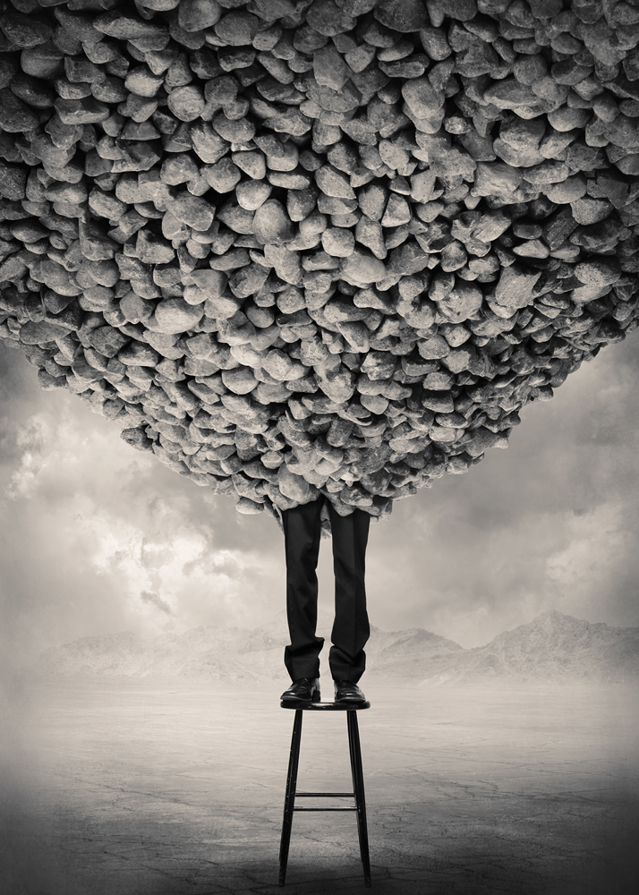 I try to make simple, scaled back compositions with few elements, where every part adds to the story. By making them devoid of any distractions like elaborate backdrops or figures in the foreground I also try to achieve a kind of dreamlike silence. Sometimes less is more, and for me one of the most interesting challenges of creating this kind of work is to try and find a simple but yet ambiguous visual representation of something very complex.