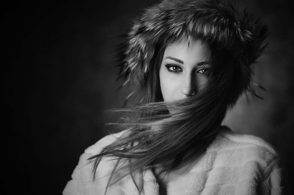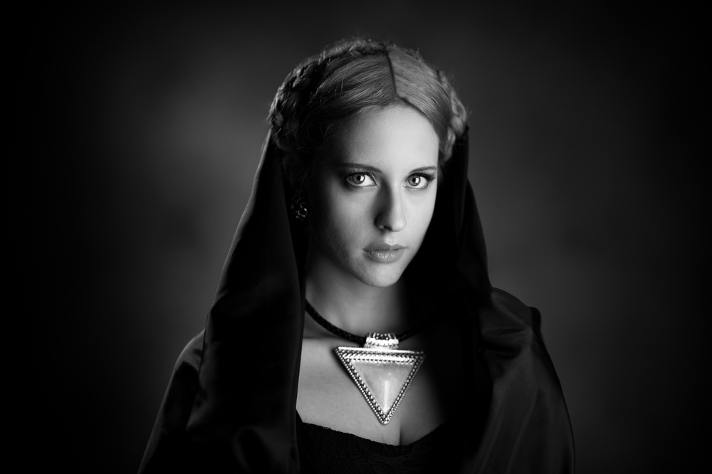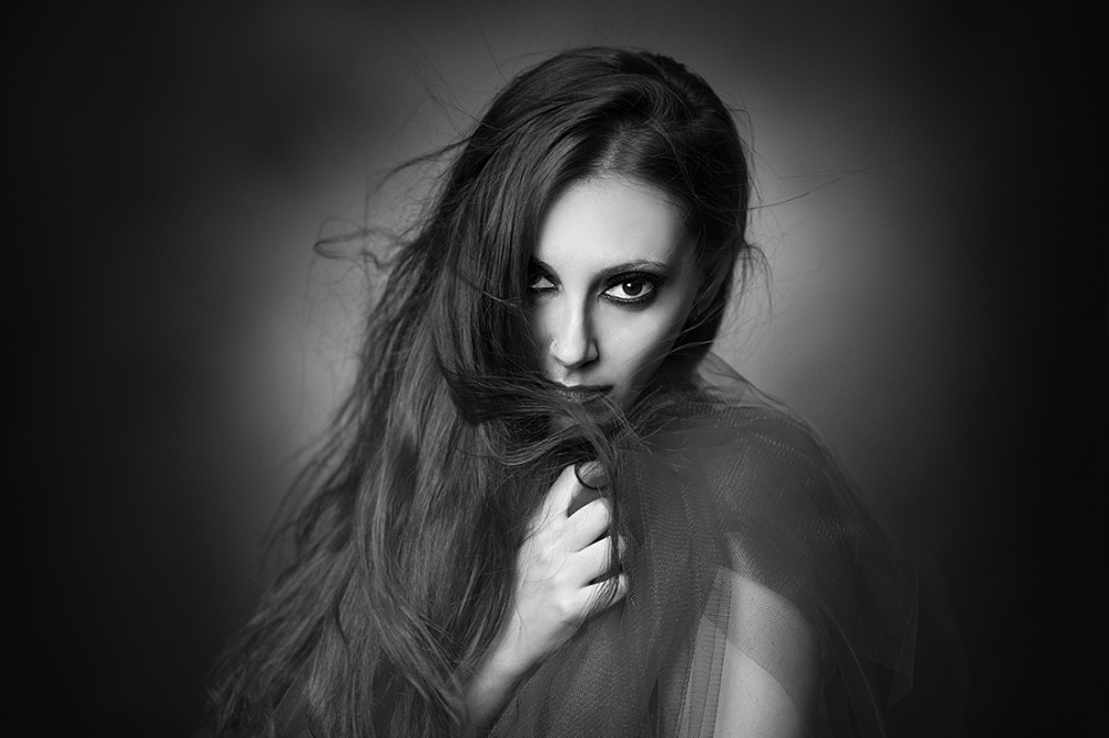 I work exclusively in raw file where I do my first adjustment of lights and shadows, then go to Photoshop and from here starts the whole process, from the skin, the composition and cutting up to the black and white conversion with levels of layers and masks with various adjustments to obtain the desired B & W. I save the file in jpg and psd so if I find some fault I can resume the work flow.