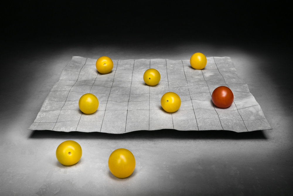 My favourite photo is called «Abundance». It represents an abstract form I made and from which vegetables seem to escape, the totality lighted only by a torch. This light is directed and at the same time gives a very particular and theatrical mood to the scene. I have imagined it like a contemporary version of the classical theme of the abundance horn. This photo takes a special place in my mind because it is the starting point of the Still life series, of the start of my membership of 1x and of my first photos published on 1x.
