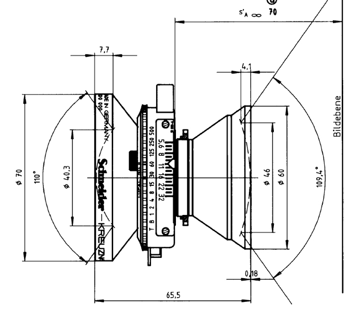 Here is the computed output: With precise planning and measurements, with the help of a ground glass, I was able to determine the flange focal distance for 3.87m, the hyperfocal distance for F/8. At F/32 everything would be in focus from 78cm to infinity. Not bad at all. I was happy. The point and shoot idea was realized.
