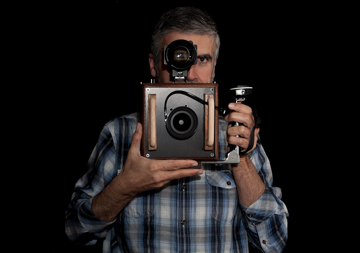Raul Pires Coelho with his self build 4x5 PointAndShoot camera: the RaulPC45