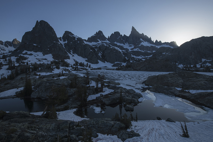 The two locations I went to were Minaret Lake and Upper Yosemite Falls. Minaret Lake is a lake in a remote back country in Eastern Sierra. In order to get there to undertake photography, we eventually undertook a three-days backpacking trip. Upper Yosemite Falls, on the other hand, is a popular tourist scene in Yosemite National Park, which can be reached in two hours through a well-marked trail. But the spot that we took our shots was an unknown viewpoint off the trail and just discovered by one of my fellow photographers very recently.