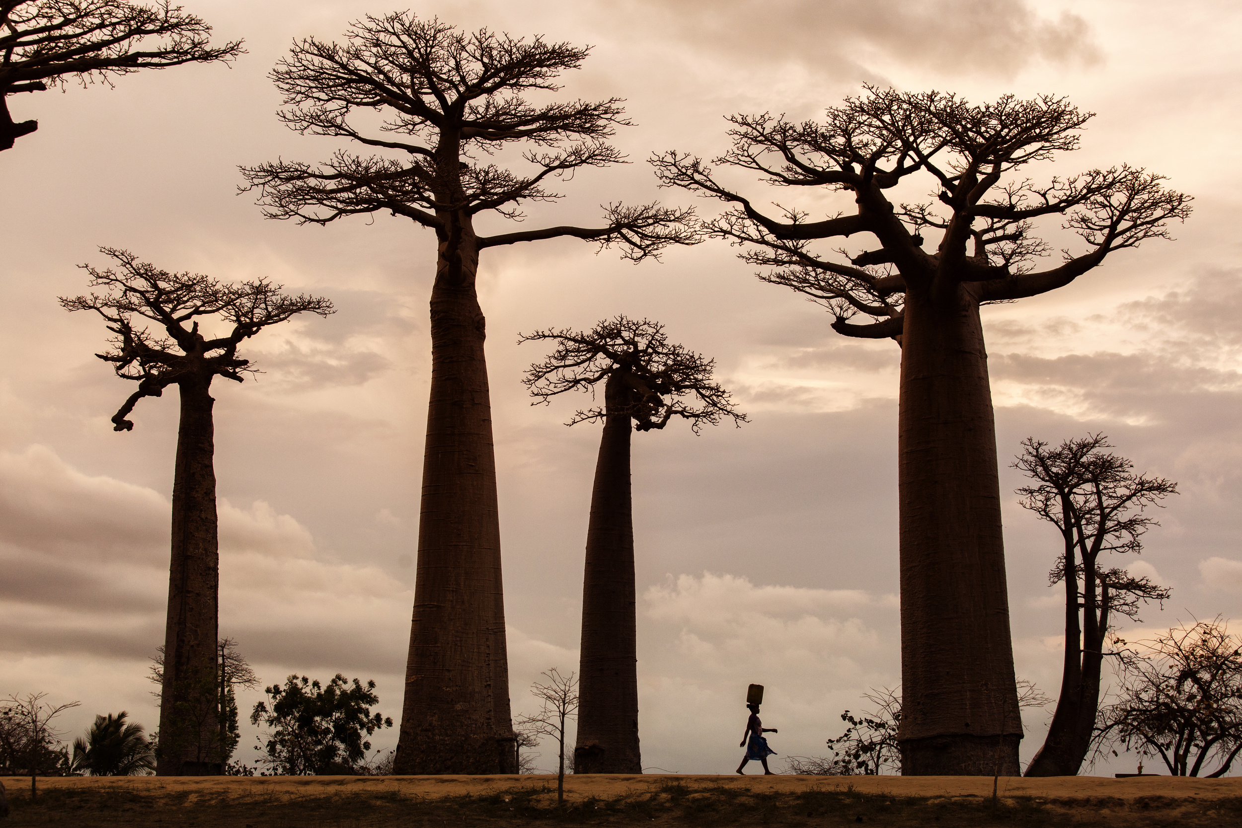 The Madagascar’s baobab is not to be mistaken with any other tree; it is a broad-leaved deciduous tree with a thick, barrel-shaped trunk. The trunk can have a diameter of 9 m or more and grow up to 30 m high. When the tree is not bearing foliage, it appears to grow in reverse order - roots up. The tree is widespread not only in Madagascar but also in some other African countries.