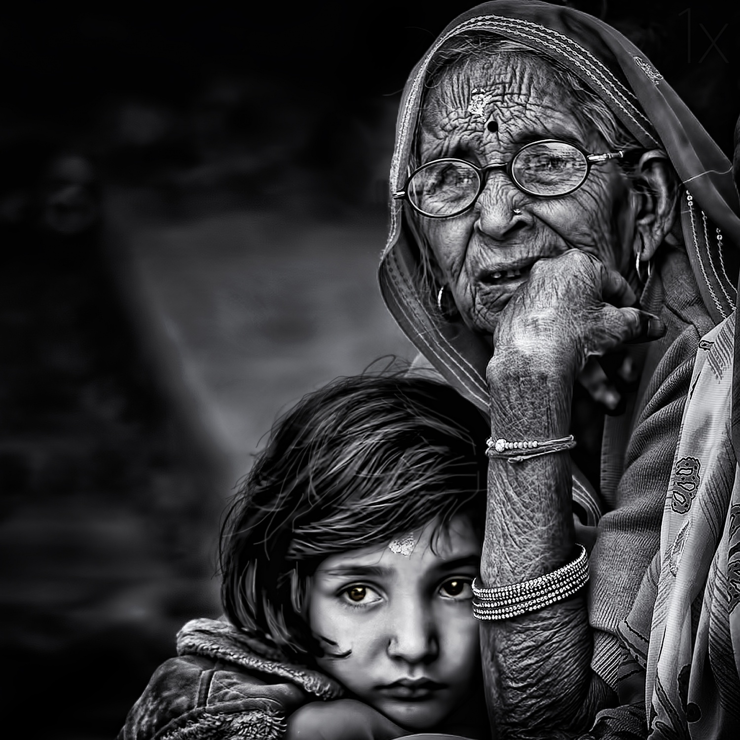 Old and young – the experience and characteristic lines in the older person’s face or hands compared to the smoothness, innocence and vulnerability of the younger face can elicit all kinds of meanings and responses