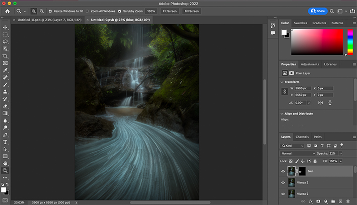 It should be noted that the image obtained from Step 2 (see p10) only achieves the long exposure effect, the foreground and background may not be properly focused. So in this step, I need to combine the sharp image produced from Step 1 with the long exposure image produced from Step 2.