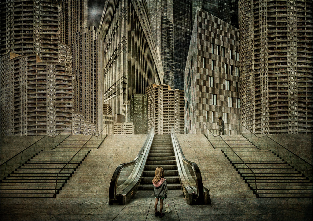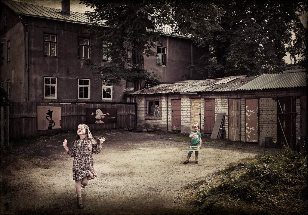 She quotes as intro for her exhibition : Children in front of the camera are always a challenge. I'm lucky that the children in my neighborhood have no fear of contact with the camera. If we went out together to take pictures, the camera was usually forgotten after a few minutes and the kids played with each other. I never gave any instructions, because I didn't want to disturb this spontaneity. This resulted in lots of natural portraits that I could use for my composings at a later date.