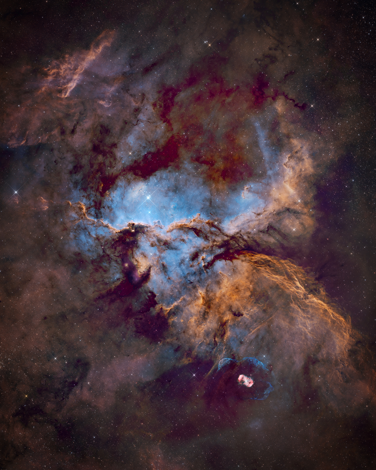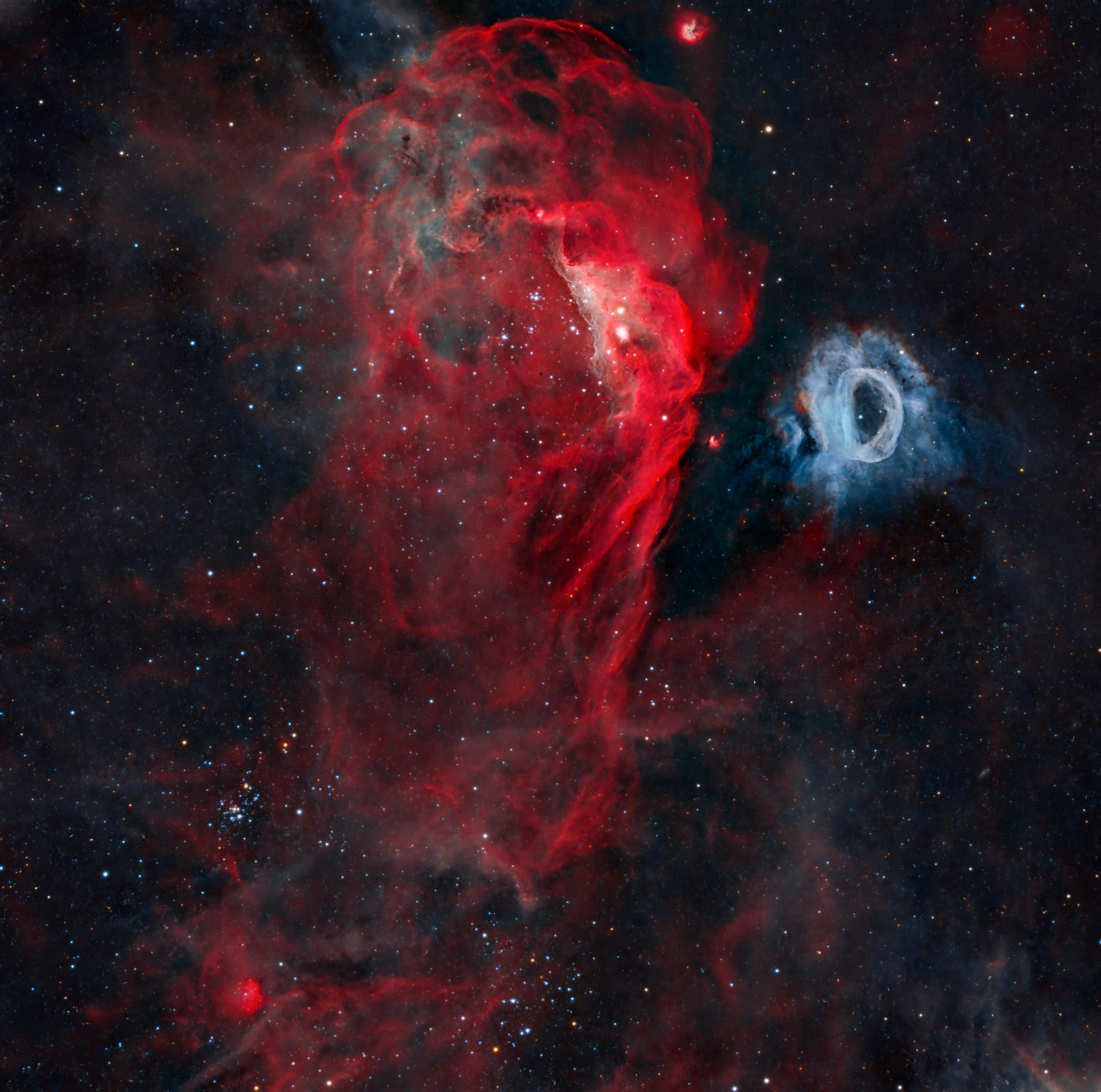 The workflow for deep-sky images is more convoluted as one needs to have a thorough understanding of all the different types of objects in the night sky. For instance, there are objects in the sky which are larger than our Moon but very faint. Then there are tiny objects millions of light years away and those require very expensive equipment. Not all objects can be seen throughout the year and are visible only in specific months. Some objects which can be seen from the Northern Hemisphere cannot be seen in the Southern Hemisphere. So, the list of variables is long, and one must have the ability to navigate through them. Equipment for deep-sky imaging is more expensive and much heavier than what one may use for nightscapes, therefore logistical planning is crucial. One must never plan a session without first ensuring all the components which make up a deep-sky imaging rig are working perfectly and in tandem. Once I arrive on location, I start setting up the gear. That's a process in which any mistake can result in a lot of angst and frustration and often a lost night of imaging. There are many technical aspects one must take care of such as polar alignment, guiding setup, cooling, etc., most too elaborate to get into here. With care taken during setup, the rest of the session goes smoothly, and one can sit back and enjoy the night sky while the imaging process is underway. Every hour I do check on the equipment and ensure there are no anomalies and that the focus is good. Sessions usually last the whole night and sometimes multiple nights. Once back home, I stack the multiple images to mitigate noise and increase signal to noise ratio. In fact, one needs a separate article to get into the complete workflow of post processing deep sky images as it really is crucial. It makes or breaks one’s efforts.