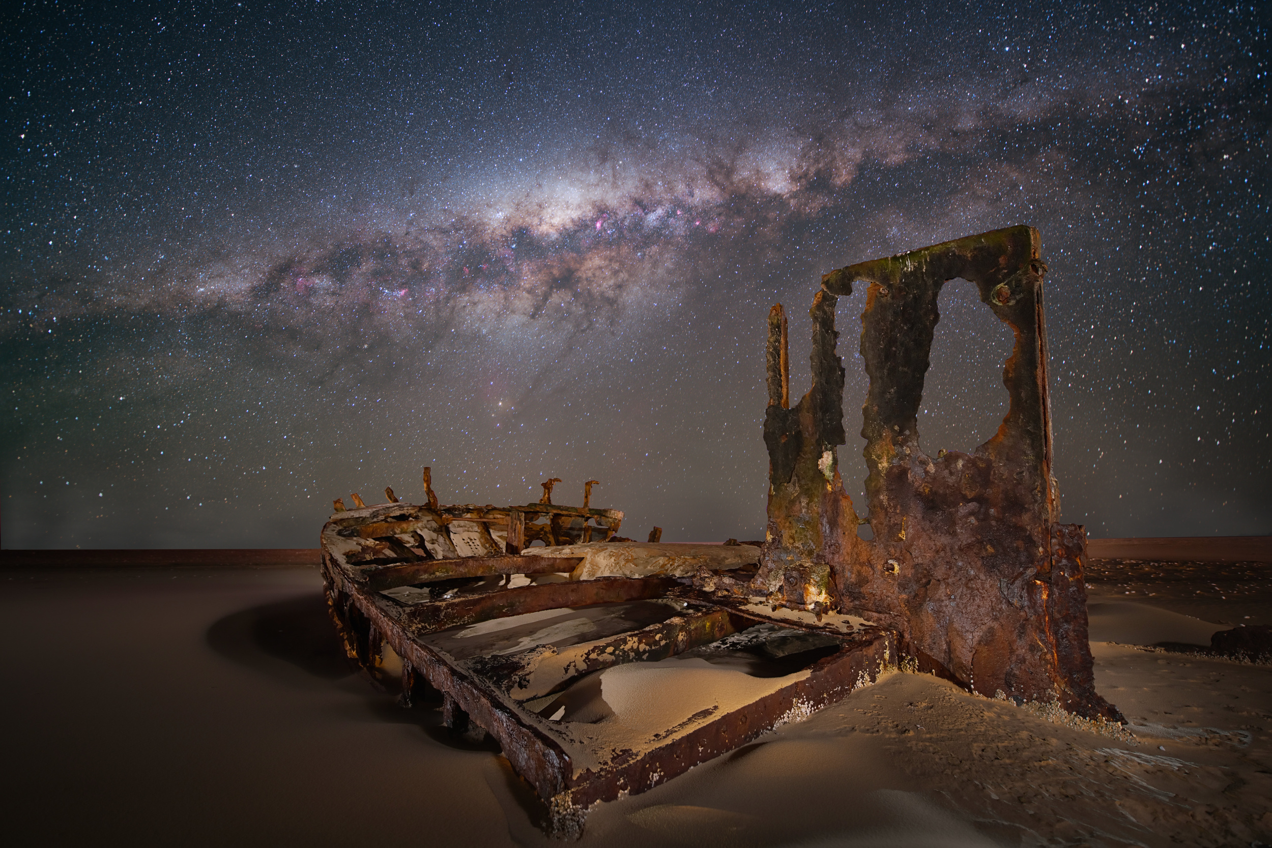 Nightscapes involve a lot of destination research on google and websites like Pinterest and Flickr. Once a particular destination or location is finalised, then I will go to Google Earth to get a sense of direction and explore the terrain. Planetarium apps such as Sky Safari help me figure out the position of certain elements of the night sky such as the Milky Way or Orion and when they will be visible. I usually arrive on location well before sunset so I can visualise my shots when there is light as it is almost impossible to do this in the dark. Usually, my sessions last all night and I try to maximise my time under clear night skies as they are difficult to come by. Processing is done using programs such as PixInsight which is a dedicated astrophotography software and final spit and polish is applied in Photoshop.