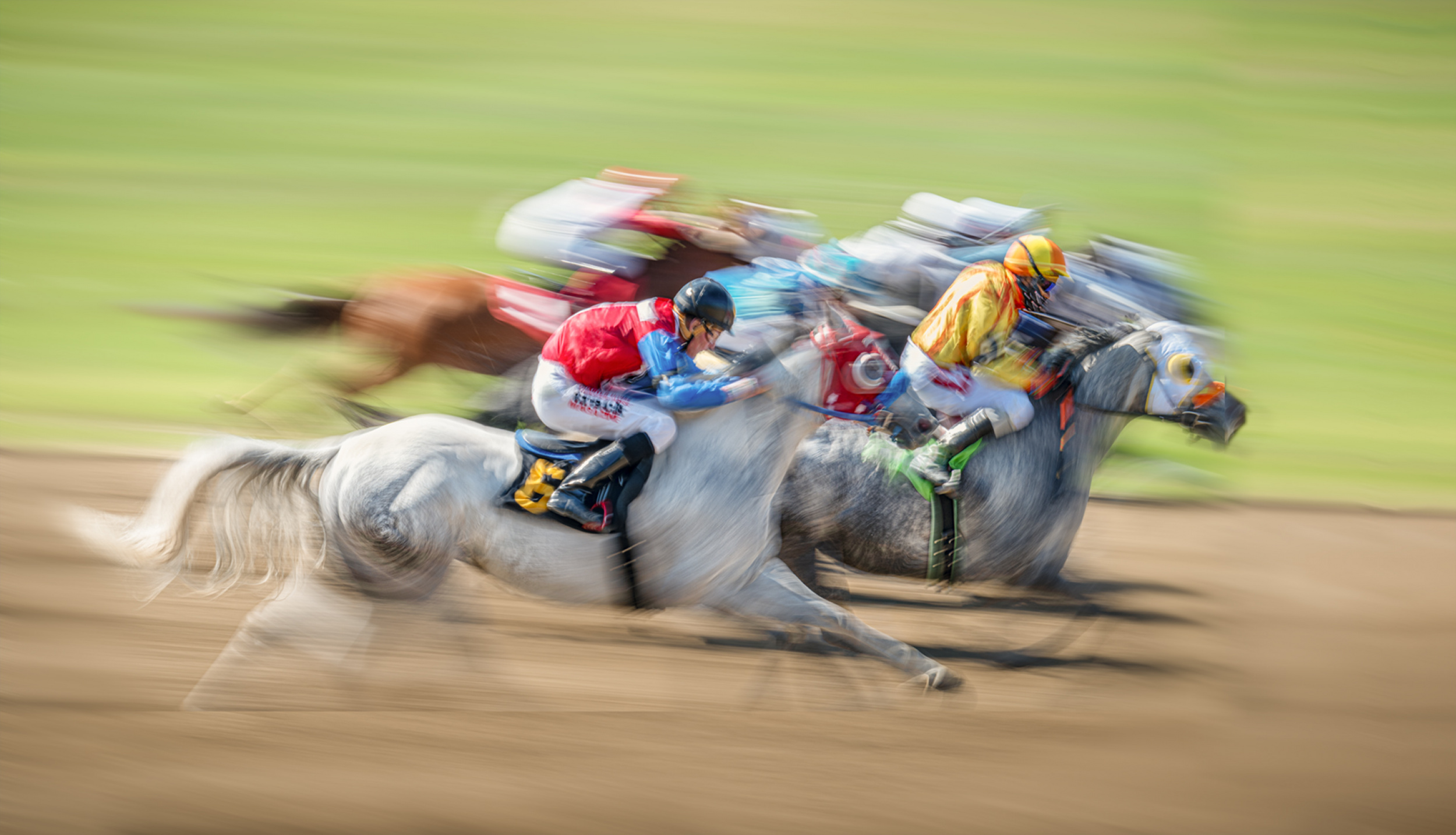 Equestrian flat racing is a type of horse racing that involves covering a distance as quickly as possible. The horses start from individual stalls with the front doors opening simultaneously. Equestrian Flat Races are held internationally over distances ranging from 800m to 4200m.