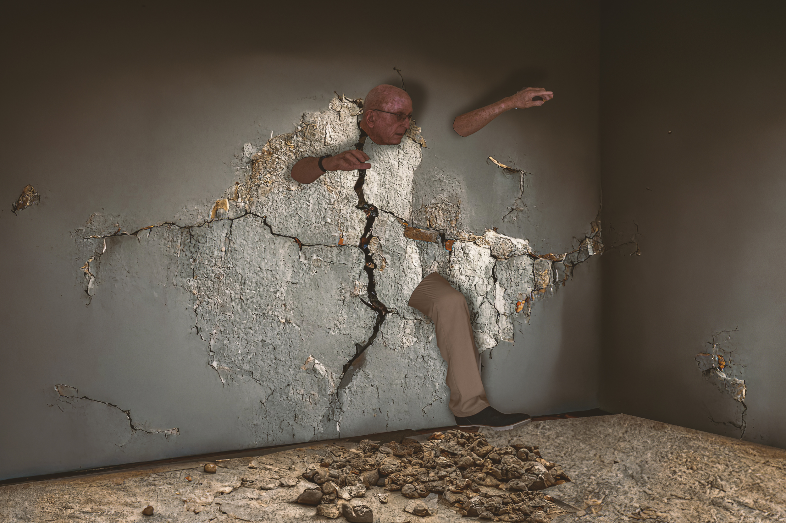 * Compositing: Once all necessary elements are captured, the real construction begins in Photoshop. I extract, position, and merge different components to create a coherent and immersive scene. This phase demands careful attention to perspective, scale, and spatial depth to maintain realism within the surreal framework. As I arrange the elements, new possibilities emerge—sometimes necessitating reshoots or the abandonment of initial details in favor of a stronger visual or narrative impact.